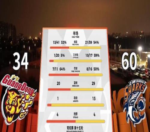 上一輪被深圳爆冷,這一場上海整隊都打得異常興奮,把輸球的怒火都發泄給了廣東,半場戰罷,上海三分17中10,廣東三分19中1,徐、胡合計16中2,廣東34-60大比分落后!