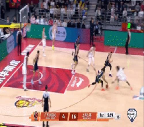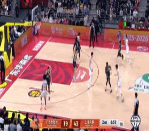 前半節廣東三分全鐵失誤不少(胡隊三分3中0,上空籃還不進),半節落后上海6-16。