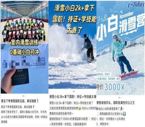 廣東卓建律師事務所文化娛樂體育法律研究中心主任,合伙人律師丁濤對中國新聞周刊表示,目前相關滑雪培訓機構在社交媒體上進行招生宣傳,普遍還停留在“打文字擦邊球”的階段,但如果出現“速成培訓考試包過”“考過確保介紹工作入職”等過于絕對的字眼,則涉嫌違反《廣告法》。“從監管責權的角度看,體育部門并不能直接監管市場上的滑雪培訓機構,但有必要考慮和市場監管部門、社交媒體平臺一起聯手。”
