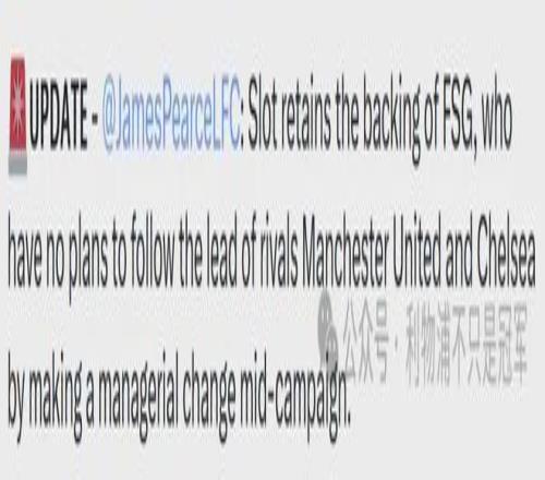 我想,芬威不是看不到利物浦的問題,更不可能對目前的競技表現滿意,之所以仍支持斯洛特,是因為他們同時也看到了球隊在本賽季所面臨的各種困難。