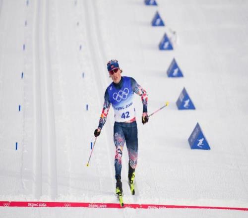 2022年2月11日,北京冬奧會越野滑雪男子15公里(傳統技術)比賽,挪威選手約翰內斯·赫斯弗洛特·克萊博在比賽中沖線。新華社發